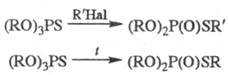 Если X = OAlk, SAlk, то первичный продукт взаимод. PX3 с RHal далее распадается с образованием фосфорильного (тиофосфорильного) соед. (Арбузова реакция):