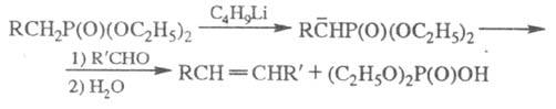 -ме-тиленовые протоны фосфорильной группы подвижны, что приводит к их депротонированию при действии сильных оснований. Образующиеся карбанионы при взаимод. с альдегидами и кетонами образуют олефины (Корнера реакция):