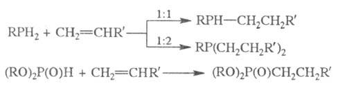Фосфины и гидрофосфорильные (тиогидрофосфорильные) соед. в условиях гомолитич. р-ций легко присоединяются к олефинам с образованием связи C-P: