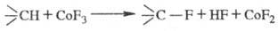 Прямое фторирование- сильно экзотермич. процесс, поэтому проведение его требует особых приемов для отвода тепла, чтобы предотвратить деструкцию связей С —С. Один из таких приемов - проведение р-ции при низких т-рах в условиях сильного разбавления: фтор разбавляют инертными газами, а фгорир. соед.- инертными по отношению к фтору орг. р-рителями. Кроме F2 используют фториды металлов, напр.: