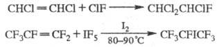Для фторирования галогенсодержащих орг. соед. применяют галоген-фториды, напр.: