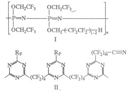Гетероцепные фторкаучуки, содержащие в цепи макромолекулы гетероатомы (P, О, N), по нек-рым эксплуатац. св-вам во многом превосходят карбоцепные. Однако вследствие сложности синтеза они не получили широкого пром. применения. Наиб. изучены перфторполиэфирные каучуки на основе дикарбоновых к-т типа НООССбН4(СF2)2СбH4СООН, нитро-зоперфторкаучуки 5040-33.jpg фторсилоксано-вые каучуки (см. Кремнийорганические каучуки), фторалко-ксифосфазеновые каучуки ф-лы I и перфторалкилентриази-новые каучуки ф-лы II (RF - перфторуглеродный радикал)
