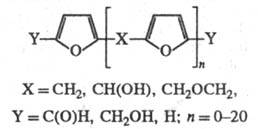 Многообразие и сложность этих р-ций обусловлены высокой реакционной способностью альдегидной (в фурфуроле) и метилольной (в фурфуриловом спирте) групп, атомов водо- рода в a-положении к циклич. атому О, а также наличием способных к ионной полимеризации двойных связей. Кроме того, фурановые циклы способны к конденсации, а после нарушения сопряжения - к раскрытию. Фурфурол и фурфу-риловый спирт могут конденсироваться между собой, с др. альдегидами, кетонами, спиртами, а также с фенолами. Эти р-ции ускоряются кислотными и, в меньшей степени, щелочными катализаторами. Ионная полимеризация по двойным связям и раскрытие цикла катализируются сильными протонными к-тами (соляной, серной, фосфорной и др.) или к-тами Льюиса (галогенидами металлов).