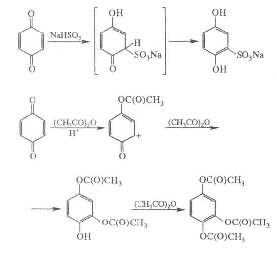Для хинонов характерны р-ции присоединения, напр.: