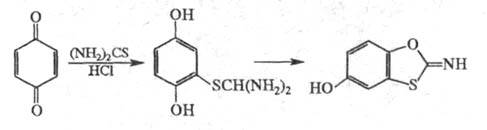 С тиомочевиной в НС1 хиноны дают продукты, способные к дальнейшей циклизации с образованием гетероциклов, напр.: