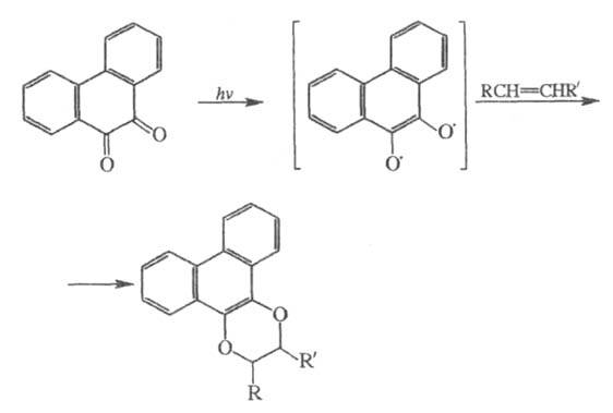 В условиях фотохим. р-ций хиноны могут присоединять по кетогруппе олефины, напр.: