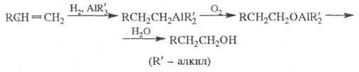 2) получение спиртов из олефинов (используется в пром-сти) путем последоват. превращений:
