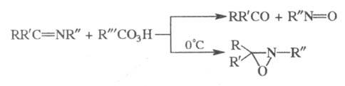 Окисление шиффовых оснований приводит к карбонильным соед., при низкой т-ре м. б. получены оксазиридины: