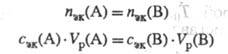 Закон эквивалента химического гласит: элементы всегда соединяются между собой в определенных массовых кол-вах, соответствующих их эквивалентам химическим или: в р-циях всегда участвуют равные кол-ва в-ва эквивалентов химических. Поэтому для р-ции, в к-рой взаимод. в-ва А и В, будут справедливы равенства: