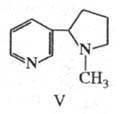 Никотин (V; т. пл. < -30 oС, т. кип. 246 °С с разл.,6049-15.jpg 1,014-1,015) вырабатывается корнями табачных растений. Бесцв. маслянистая жидкость, хорошо раств. в воде и орг. р-рителях. Блокатор н-холинорецепторов (чувствительны к никотину) в симпатич. и парасимпатич. ганглиях скелетных мышц. При остром отравлении наблюдаются тошнота, рвота и брадикардия, затем - тахикардия, судороги и угнетение (вплоть до полной остановки) дыхания. ЛД50 0,3 мг/кг (мыши, в/м).