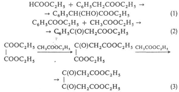 НСООС2Н5+СН3(СН=СН)nСООС2Н5:НС(O)СН2(СН=СН)nСООС2Н5