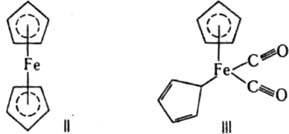 Особенно важное значение имеют многоцентровые координационные связи, образуемые лигандами с сопряженными системами p-связей. Координационные соед. с координационными связями данного типа относят к я-комплексам. Отличит, особенность этих соед.: связь атома-комплексообразователя с лигандом осуществляется не с одним, а сразу с неск. атомными центрами. Примеры p-комплексов - ферроцен (ф-ла II), h1, h5-бис-(циклопентадиенил)железодикарбонил (III).