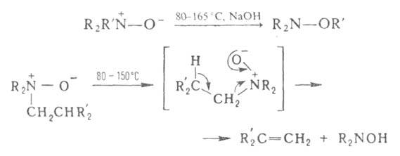 При нагр. алифатич. аминов N-оксид образуют замещенные гидроксиламины (перегруппировка Майзенхаймера) или олефины (перегруппировка Коупа), напр.: