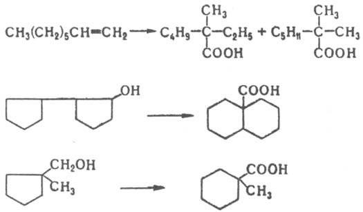 Р-ция, как правило, сопровождается перестройкой углеродного скелета, приводящей к образованию третичных к-т, напр.: