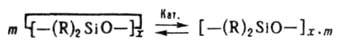 С увеличением концентрации катализатора мол. масса образующегося полидиорганосилоксана понижается. Скорость р-ции описывается ур-нием:
