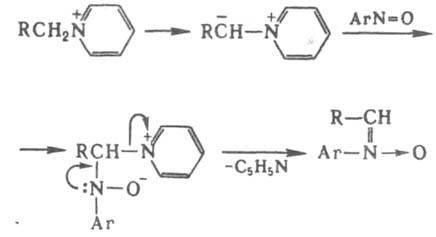 Исходные пиридиниевые соли получают алкилированием пиридина, а также иодированием метилкетонов или метил-замещенных гетероциклич. соед. в присут. пиридина (Ортолевы - Кинга реакция). Механизм получения нитрона предполагает промежут. образование пиридиний-илида и бетаина: