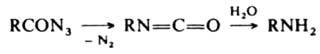 Протекает с укорочением углеродной цепи на один атом. Процесс осуществляют в инертных р-рителях при 20-150 °С. Азиды галогенкарбоновых к-т, в к-рых атом галогена удален от карбоксильной группы, легко образуют галогензамещенные амины, азиды дикарбоновых к-т превращ. в диамины, напр.: