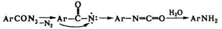 В этом случае для осуществления Курциуса реакции гидрокси- или аминогруппу защищают путем их алкилирования или ацилирования. Механизм Курциуса реакции включает миграцию алкильного (арильного) радикала к атому N в промежуточно образующемся ацилнитрене, напр.: