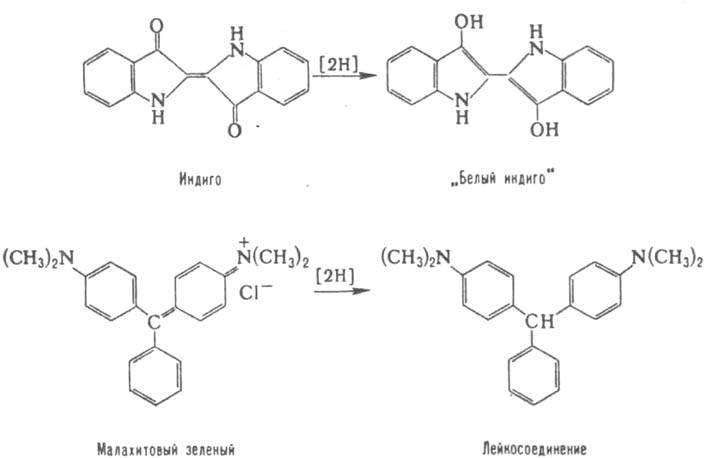 Лейкосоединения легко окисляются в исходные красители, напр. О2 воздуха, РbО2, Сl2, Н2О2. Na - Соли лейкосоединений нерастворимых в воде кубовых, индигоидных или сернистых красителей хорошо раств. в воде, обладают повыш. сродством к целлюлозным волокнам; такие соли широко используют в кубовом крашении (см. Кубовые красители). Восстановление красителей осуществляют, напр., Na2S2O4 или гидроксиметансульфинатом Na (ронгалитом, HOCH2SO2Na) в щелочной среде. Для удобства в применении нек-рые красители выпускают в виде сернокислых эфиров лейкосоединений (напр., кубозоли). Нек-рые лейкосоединения, напр. лейкохинизарин, лейко-1,4-диаминоантрахинон, более реакционноспособны, чем исходные красители, и служат промежут. продуктами в синтезе кислотных и дисперсных красителей.