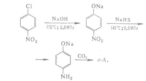 или обработкой резорцина при 200°С 10%-ным водным р-ром NH3 (кат. - NH4Cl). n-Аминофенол синтезируют из 4-хлорнитробензола: