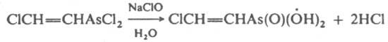 Люизит активно взаимод. с меркаптанами. Нек-рые из них (напр., 2,3-димеркаптопропанол, унитиол) применяют для профилактики и терапии поражений люизитом. Получают люизит взаимод. AsCl3 с ацетиленом в присут. к-т Льюиса: