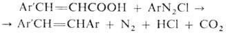 Соед., кратная связь к-рых активирована электроноакцеп-торными группами, в Меервейна реакции более реакционноспособны. Аро-матич. a, b-непредельные карбоновые к-ты при арилирова-нии, как правило, декарбоксилируются, образуя стильбены, напр.: