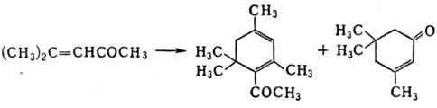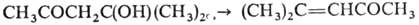 При нагр. с разбавленными к-тами и щелочами гидроли-зуется в ацетон. Присоединяет 2 молекулы NaHSO3-пo двойной связи и по СО-группе. В присут. СаО или ВаО самоконденсируется: