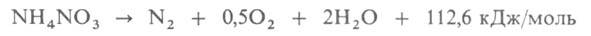 2,5 Ом*см (175°С). Ур-ния температурной зависимости давления пара: Ig p (мм рт. ст.) = 10,708 - 4670/Т (349-438 К), I gp (мм рт. ст.) = 9,981 - 4360/Т (373-513 К). Р-римость аммония нитрата (г в 100 г р-рителя): в воде -119 (0°С), 212 (25°С), 346 (50°С); жидком NH3-391 (25 °С). Раств. также в метаноле, этаноле, пиридине. При 200-270°С разлагается: NH4NO3 -> N2O+ 2Н2О + 36,8 кДж/моль. Выше 270°С или при воздействии удара может разлагаться со взрывом: