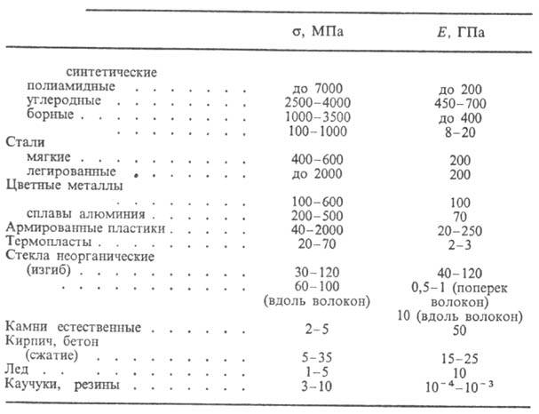 Для техн. применений часто решающее значение имеет отношение а к плотности в-ва. По этому показателю волокна из орг. полимеров и армированные пластики имеют большие преимущества по сравнению с традиц. конструкц. материалами.