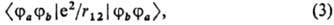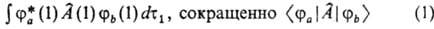наз. кулоновскими. Они соответствуют классич. элект-ростатич. взаимодействию двух зарядов, один из к-рых распределен в пространстве с плотностью rа(1) = j*a(1) х х ja(1), а другой-с плотностью rb (2) = jb* (2) jb (2). Если переставить индексы а и b у ф-ций, следующих за символом оператора e2/r12, получаются молекулярные интегралы вида