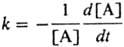, где [А]-концентрация реагирующих молекул, t-время. При заданной т-ре k пропорциональна давлению р в области низких р (обозначается k0) и не зависит от р в области достаточно высоких р (обозначается