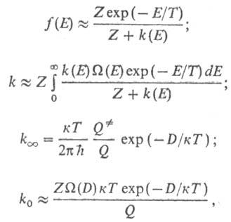 где Q-статистич. сумма, Z- число столкновений в единицу времени (газокинетич. число). Расчет f(E), k,