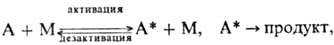 Мономолекулярные реакции, как правило, эндотермичны, и для р-ции необходима активация - переход частицы А в активное состояние А*, энергия к-рого достаточна для преодоления потенц. барьера на пути р-ции. Активная молекула может самопроизвольно превратиться в продукт либо дезактивироваться. Эти качеств. черты мономолекулярных реакций описываются схемой Линдемана: