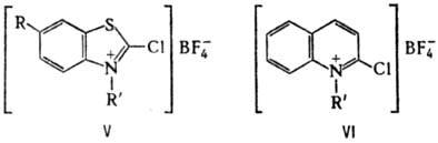 Диазарсолы получают циклоприсоединением AsCl3 к гидразоналканам RNHN=C(R)CH3; арсаметинцианины -взаимод. [(CH3)3Si]3As с тетрафторборатами 2-хлор-З-алкил(бензо-1,3-тиазолия) (V) или 1-алкилхинолиния (VI).