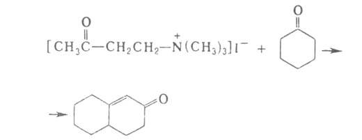При склонности исходного винилкетона к полимеризации используют иодметилат соответствующего основания Манниха (р-ция Робинсона - Манниха), напр.: