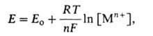 где Ео- стандартный электродный потенциал, [Мп+]- при-поверхностная концентрация ионов металла, Т-абс. т-ра, R-газовая постоянная. Однако, оставаясь равновесным, потенциал меняется, т.к. [Мn+] у пов-сти возрастает пропорционально скорости анодного растворения (т.е. плотности тока i). Соотв. зависимость Е от i описывается ур-нием: