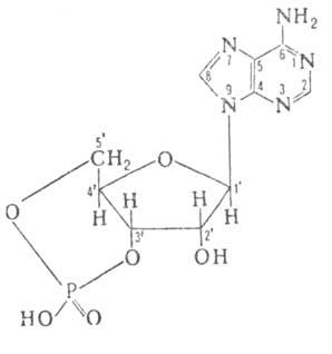 АДЕНОЗИНМОНОФОСФАТ ЦИКЛИЧЕСКИЙ (аденозин-3',5'-циклофосфат; 3',5'-АМФ; цАМФ), мол. м. 329,22; бесцв. кристаллы;