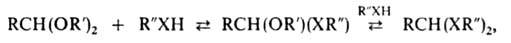 При нагр. ацеталей и кеталей со спиртами или тиолами происходит полный или частичный обмен алкоксигрупп на др. алкоксиили алкилтиогруппы: