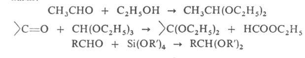 Последние два метода можно использовать для синтеза разл. карбонильных соед. через стадии получения ацеталей и кеталей с послед. их гидролизом в кислой среде.