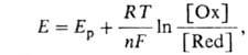 где Ер- реальный потенциал пары в данной среде, [Ох] и [Red]-концентрации соотв. ее окисленной и восстановленной форм, n - число электронов, участвующих в окислит.-восстановит. р-ции, R - универсальная газовая постоянная, F- число Фарадея, T - абс. т-ра.