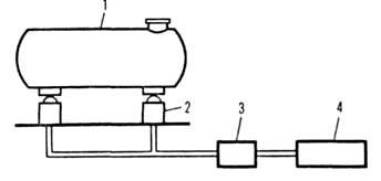 Рис. 8. Электронное весовое устройство: 1 - взвешиваемая емкость; 2-силоизмерители; 3 - усилитель; 4-электронный блок с цифровым индикатором.
