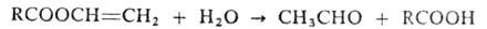 Высшие карбоновые к-ты винилируют при ~ 160°С и ~ 1,5 МПа в присут. Zn- или Cd-солей соответствующих карбоновых к-т, низшие (напр., уксусную)-при 150-240°С в присут. солей Zn или Cd на носителе: RCOOH + + СН