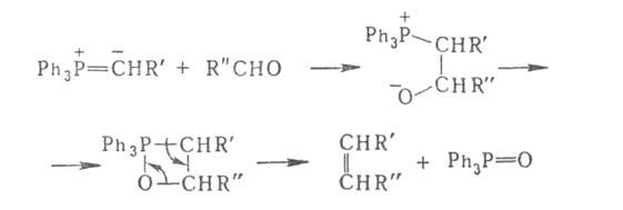Механизм Виттига реакции можно представить след. образом: