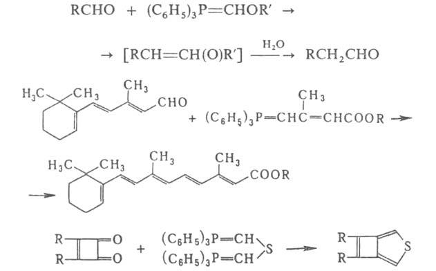 Виттига реакцию широко используют в тонком орг. синтезе, напр. для получения альдегидов, содержащих на один атом С больше, чем в исходном соед., а также полиенов, гетероциклич. соед.: