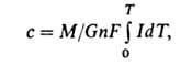 где I - сила тока, А, с - концентрация влаги, кг/м3, Q - расход газа, м3/с, n - число электронов, необходимое для электролиза одной молекулы воды, F - число Фарадея, М - мол. масса воды.