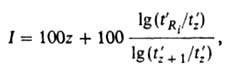 где t'2, t'z+1 и t'Ri.-исправленные времена удерживания н-алканов с числом углеродных атомов z, z + 1 u i-того компонента соответственно; t'Ri. = tRi-tм (tRi-время удерживания i-того компонента). Надежность идентификации по относит. величинам удерживания возрастает при использовании колонок с разными сорбентами.