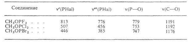 Табл. 2-ХАРАКТЕРИСТИЧНЫЕ ЧАСТОТЫ В ИК-СПЕКТРЕ ГАЛОГЕНФОСФИТОВ