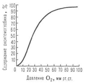 2 мм рт. ст.) 1 л крови, насыщенной в легких кислородом (92-98% гемоглобина находится в форме НbО2), отдает в тканях ок. 45 мл О2, при этом содержание НbО2 в венозной крови составляет 70-75%.