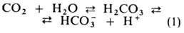 Из клеток тканей СО2 диффундирует через плазму крови в эритроциты, где гидратируется в р-ции, катализируемой ферментом карбоангидразой: