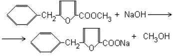 В круглодонную колбу емкостью 150 мл, снабженную мешалкой и обратным холодильником, помещают 21,6 г (0,1 моль) метилового эфира 5-бензилфуран-2-карбоновой кислоты с температурой кипения 150-155 градусов/1мм и 50 мл 10% раствора едкого натра.